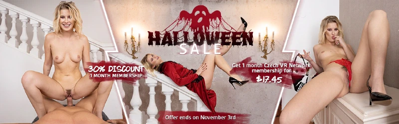 The Czech VR family of sites, including Czech VR Casting and Czech VR Fetish have their own special Halloween Sale offer of 30% off monthly subscriptions. Casey Nice is a trick-or-treater offering a treat herself in the Halloween themed scene from Czech VR.